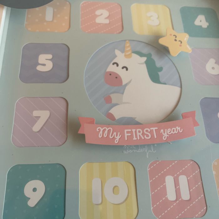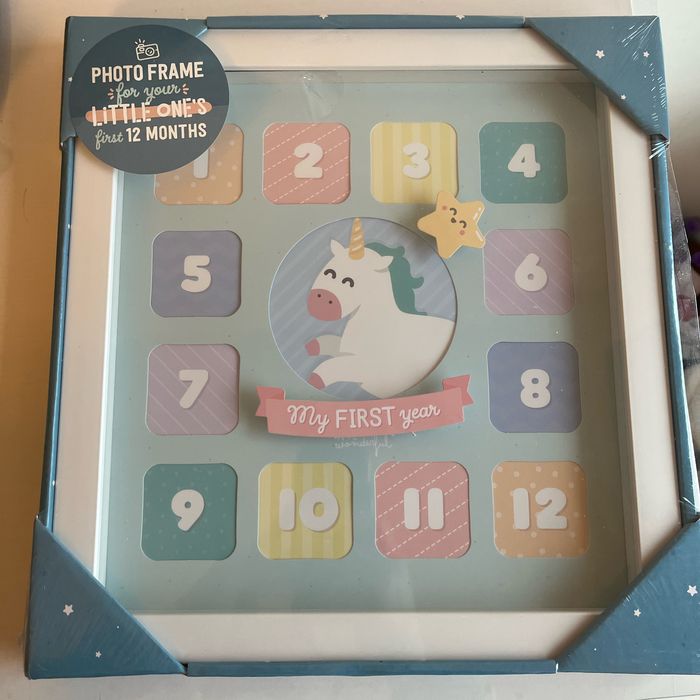 Cadre photo pour la première année de bébé. Encore emballé. Envoi rapide par mondial Relay ou relais colis. N’hésitez pas si vous avez des questions :)