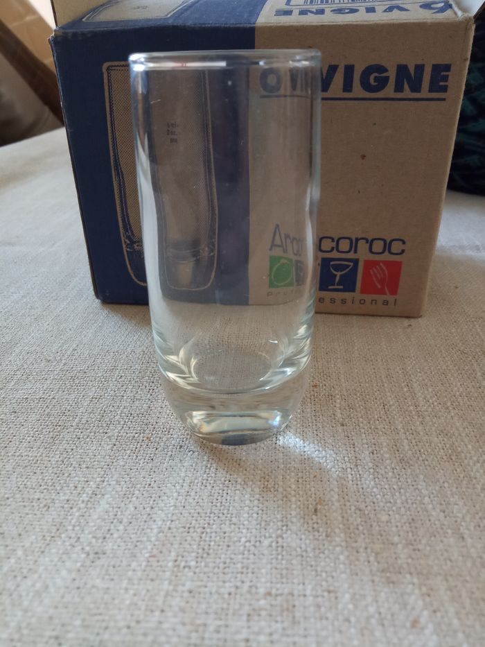 Ensemble de 6 petites Verrines "Arcoroc" Modèle: Vigne Matière: en Verre Couleur: Transparent Dimensions: hauteur 9cm - Diamètre 3,3cm Contenance: 6cl (Marque professionnelle) Ensemble en parfait état, vendu comme sur les photos (Ni brèche, ni fêle)