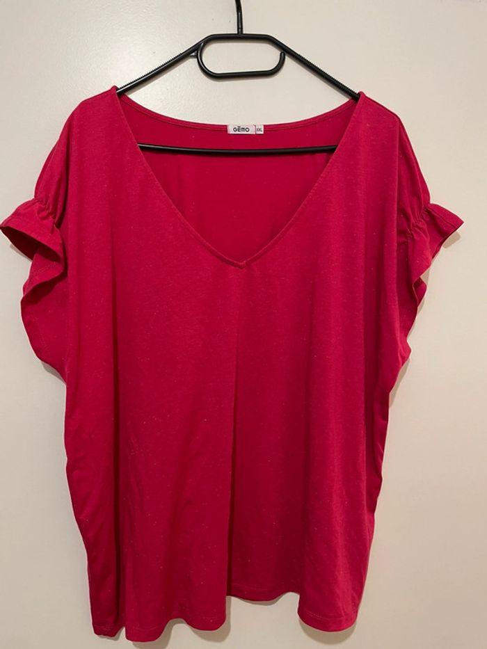 T shirt Gémo taille XXL neuf rose légèrement pailleté - photo numéro 1