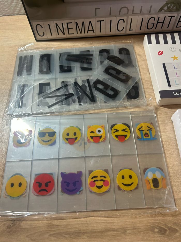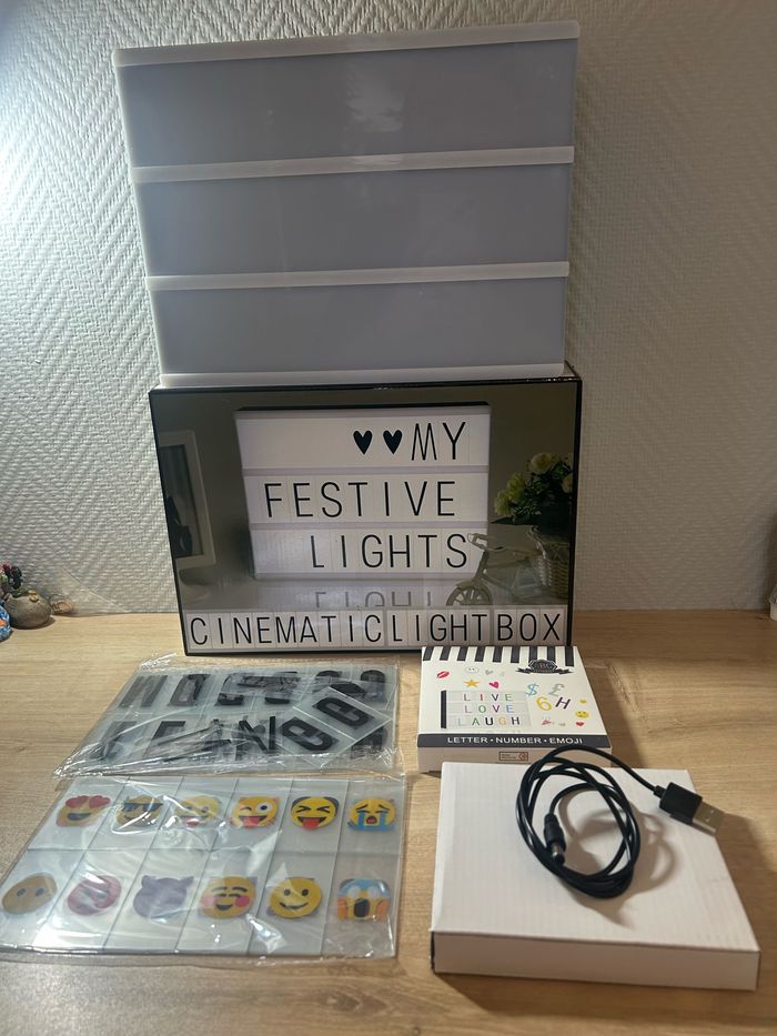 Light box en parfait état comme neuve vendu avec le chargeur les lettes normal, les lettres en couleurs et les emojis fonctionne avec des piles