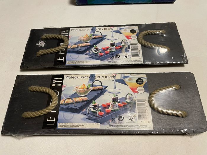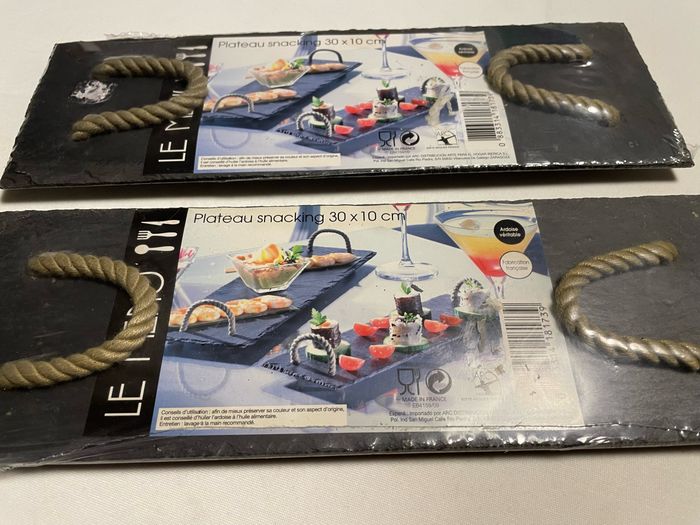 Deux plateaux Snacking en ardoise Neuf sous blister Ardoise véritable Fabrication française Dimension 30/10 cm De la marque ARC