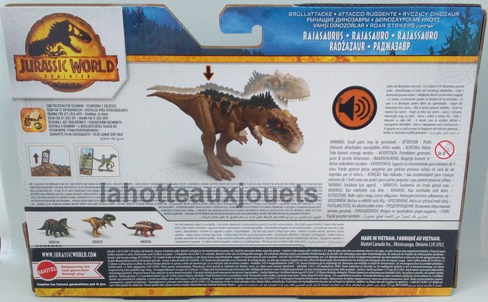 MATTEL JURASSIC WORLD DOMINION DINOSAURE RAJASAURUS HDX35 LONGUEUR ENVIRON 30CM FIGURINE ARTICULEE Vous êtes intéressé par plusieurs produits n'hésitez pas à nous contacter pour réduire les frais de port! NE CONVIENT PAS AUX ENFANTS DE MOINS DE 4 ANS ! PETITES PIECES RISQUE D'ETOUFFEMENT !