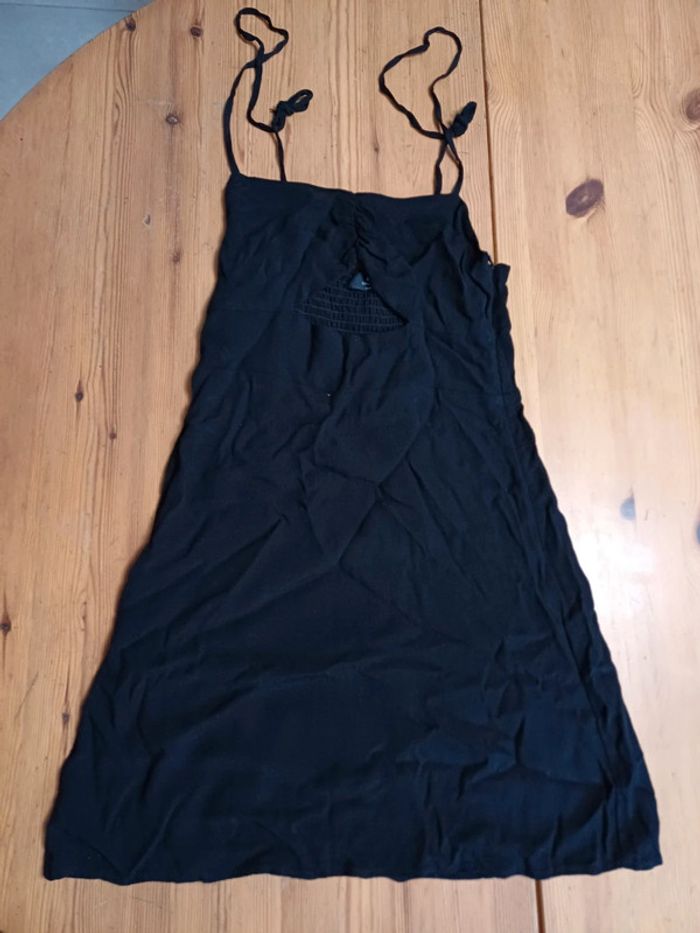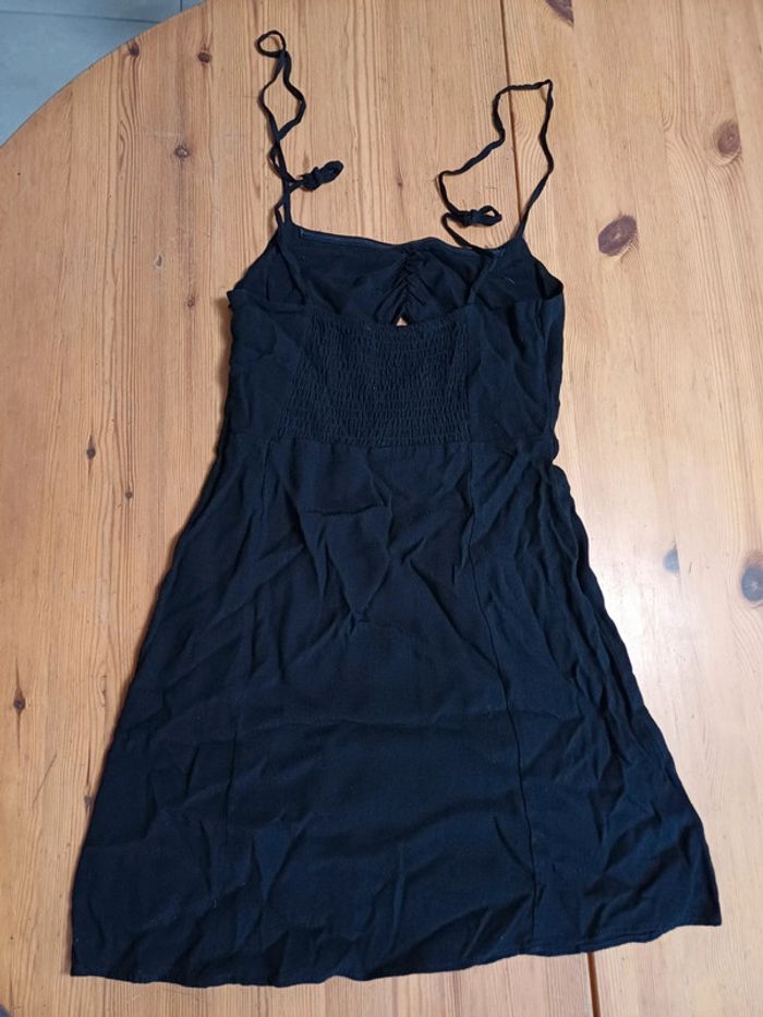 Robe légère avec les bretelles qui se nouent dans le dos. Ouverture devant entre les 2 seins et dos smocké. Taille M.