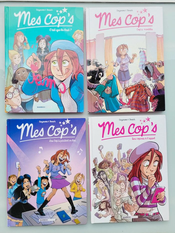BD MES COP'S - Tome 1 : Des Copines à l'appel - Tome 2 : C'est qui la Best ? - Tome 3 : Cop's modèles - Tome 5 : Le Cop's partent en live Couvertures abîmées (rayées) mais intérieurs en très bon état Mes autres BD : #bdmooglou #livreadomooglou #livreenfantmooglou