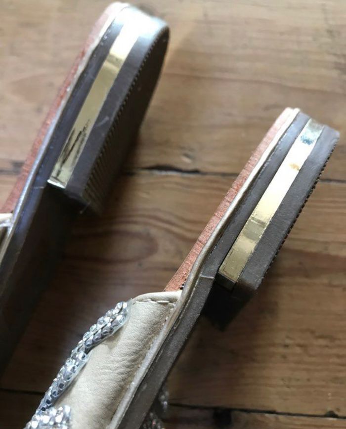Sandales tongs beige, anneau gros orteil, bande en strass brillant et bande doré sur le talon pointure 41 R and BE
