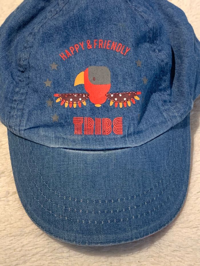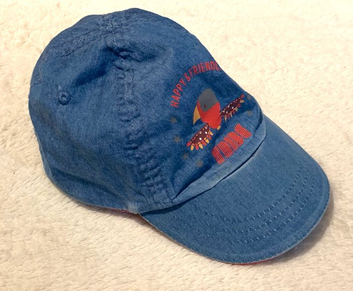 Casquette bébé tissus bleu Obaibi 9-12mois impression «Tribe» Tissu type jean Élastiqué à l'arrière *un peu décoloré ⛔️ Prix FIXES, NON négociables 🚨 👏🏻 Réductions sur les lots 👍🏻 #casquettebébé #bébé #obaibi #casquettebleu #1an #cc_garcon0_1an
