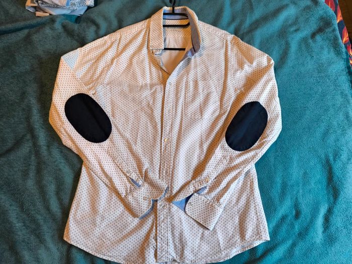 Taille 38 Blanche a motif Portée 1 fois Parfait état Coupe slim fit #chemisehomme #été #mariage