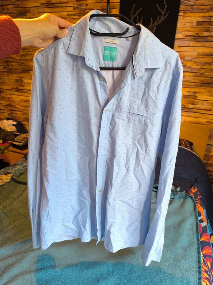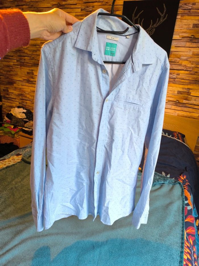 Chemise a motif jule taille 38 Parfait état portée une fois Bleu ciel Slim #chemisehomme #mancheslongues#commeneuf #jules #mariage#coupeslim