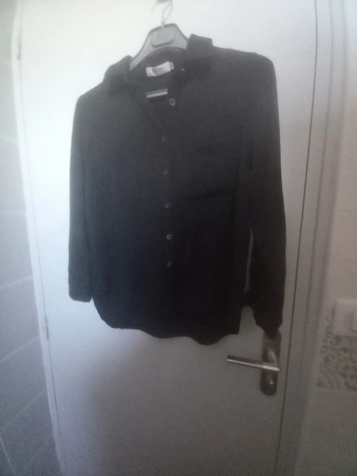 Chemisier noir, taille M, très bon état. Matière rayon.