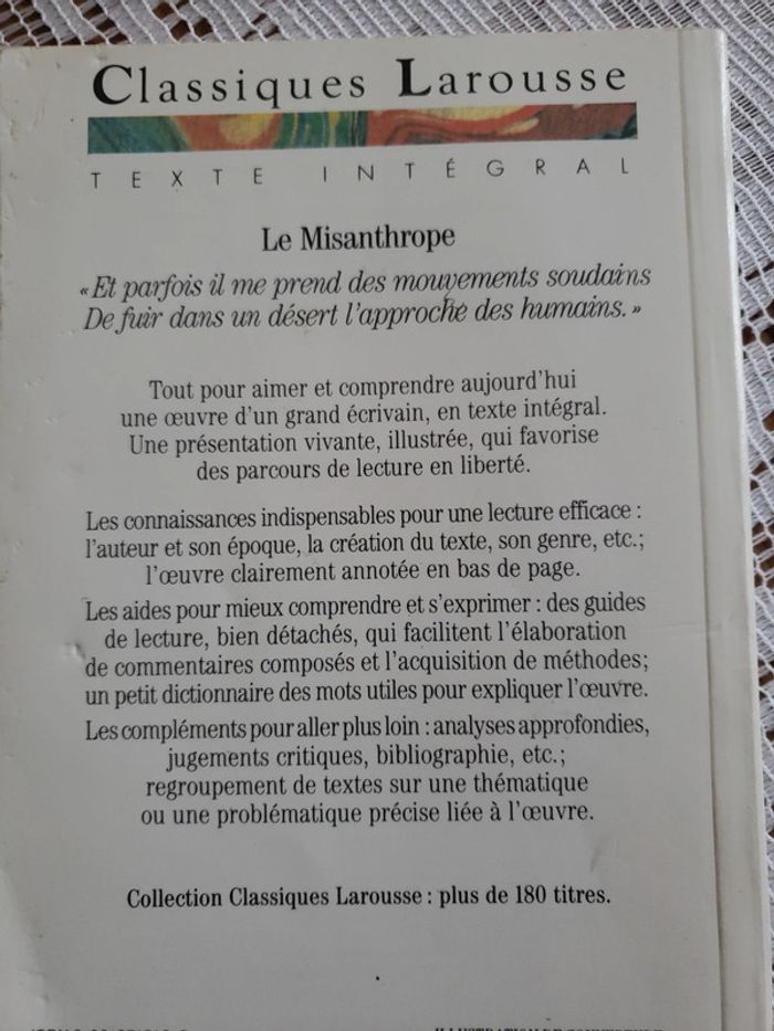 Livre de Moliere " Le misanthrope " - photo numéro 2