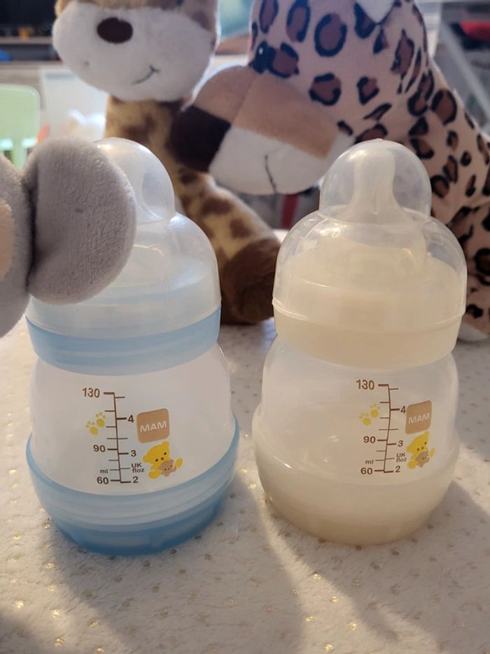 Lot de 2 biberons Easy Start™ anti-colique 130 ml Colors of Nature Oursons 🐻 Le biberon MAM Easy Start™ anti-colique est le biberon idéal pour les nouveau-nés : les bébés peuvent boire à leur rythme, en toute décontraction. Tétine parfaitement adaptée au lait maternel et infantile – idéal pour les nouveau-nés Biberon de 130 ml pour les premiers repas de bébé Réduit les bulles d’air et les coliques2 Tétine plate et douce, semblable au sein de maman pendant l’allaitement Fonction unique d’auto-stérilisation, idéal en déplacement Les produits MAM ne contiennent pas de BPA conformément à la réglementation en vigueur. Ils ne contiennent pas non plus de BPS.