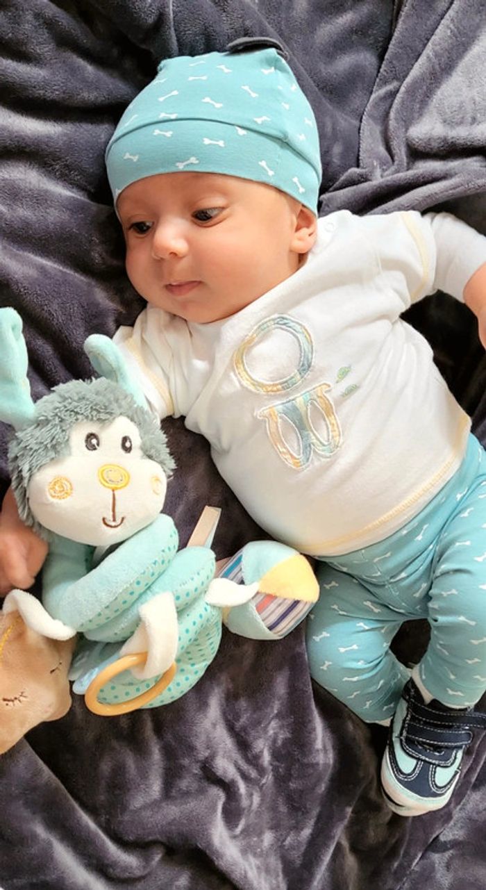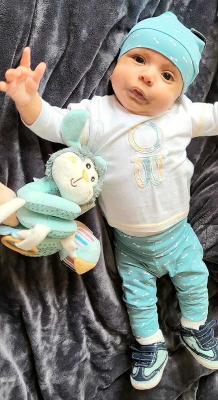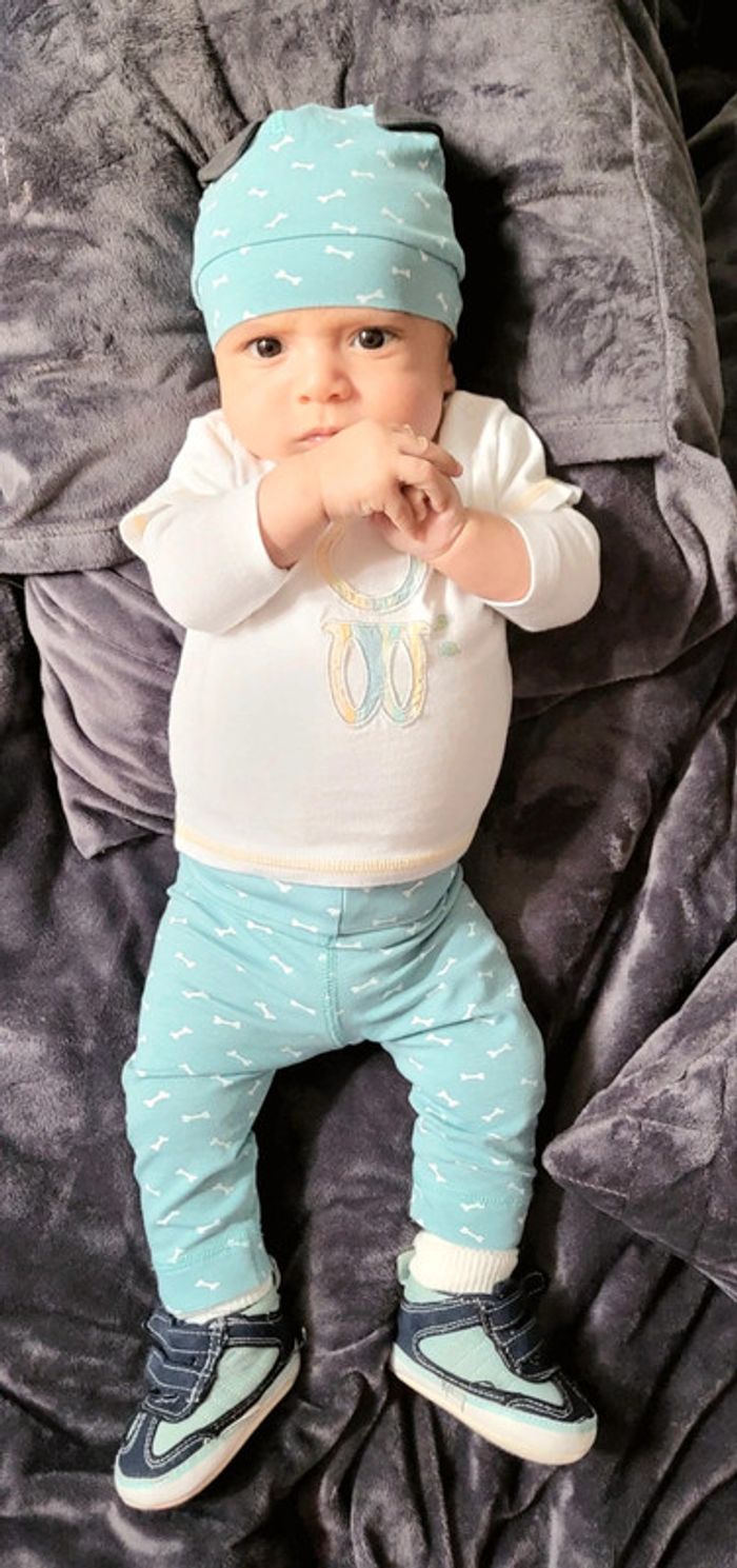 Pantalon 3 mois 🐱 très bon état, taille élastique, vendu avec tenue complète à 5€ (bonnet oreille de chien, tee-shirt, chaussures) #pantalonbébé #pantalon3mois #printemps #été #3moisgarçon #bebegarcon #grenouillère #modegarcon #modebebe #modebebegarcon #lotbebe #tenuefunbebe #ensemblebebe #modebebe3mois #bébé #bebe3mois #os #vetementbebe