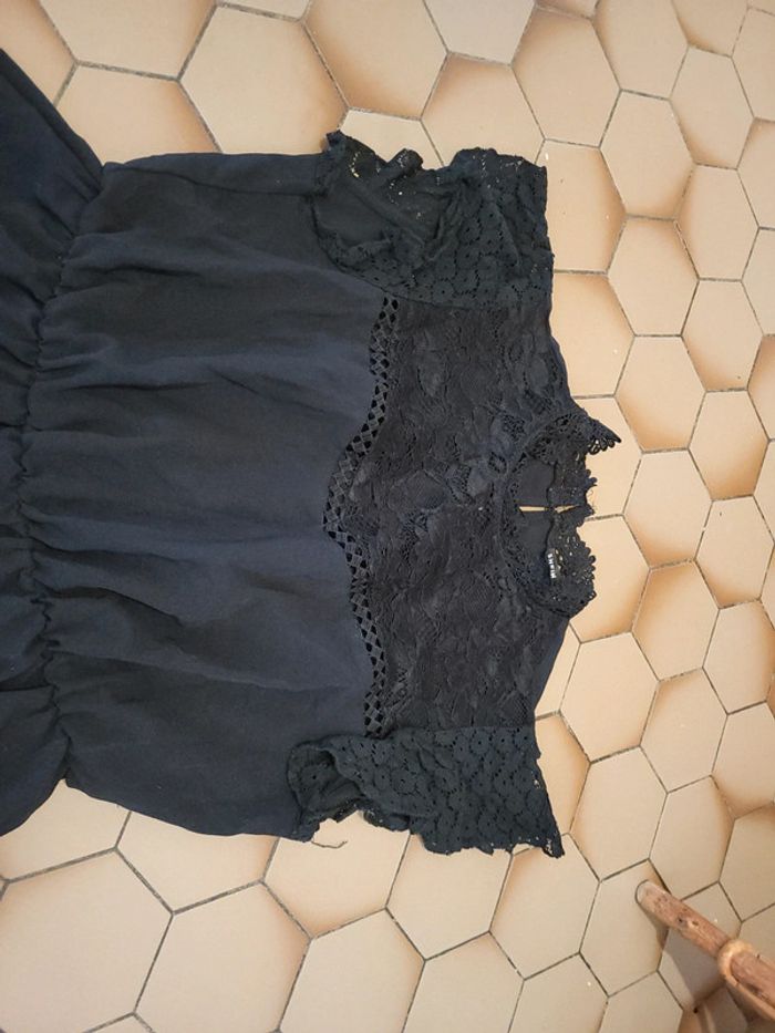 Robe noir, élastique à la taille, dentelle en haut de la robe