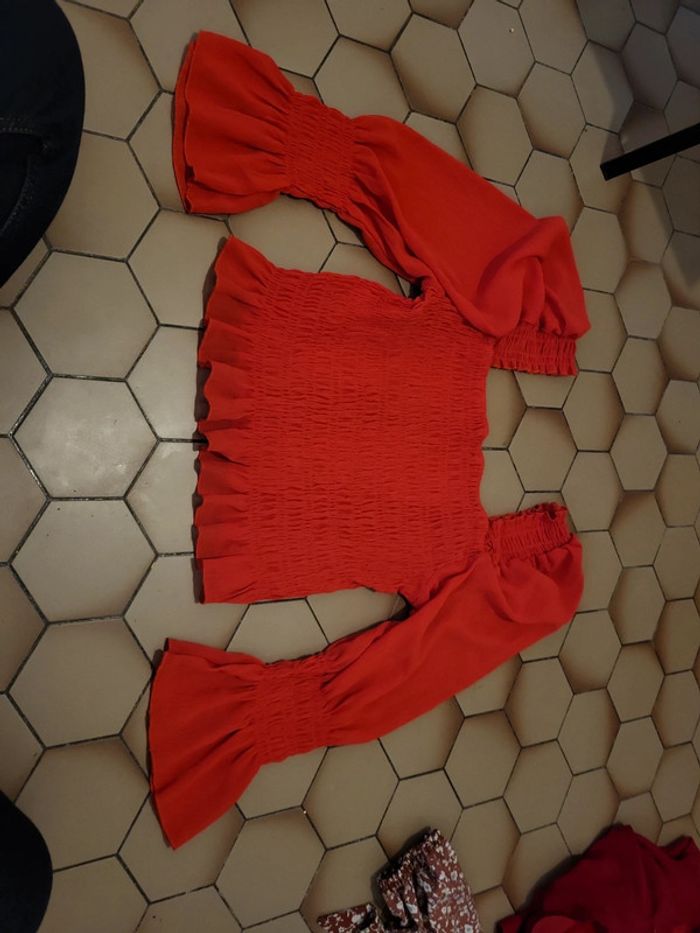 Croc top rouge manche 3/4