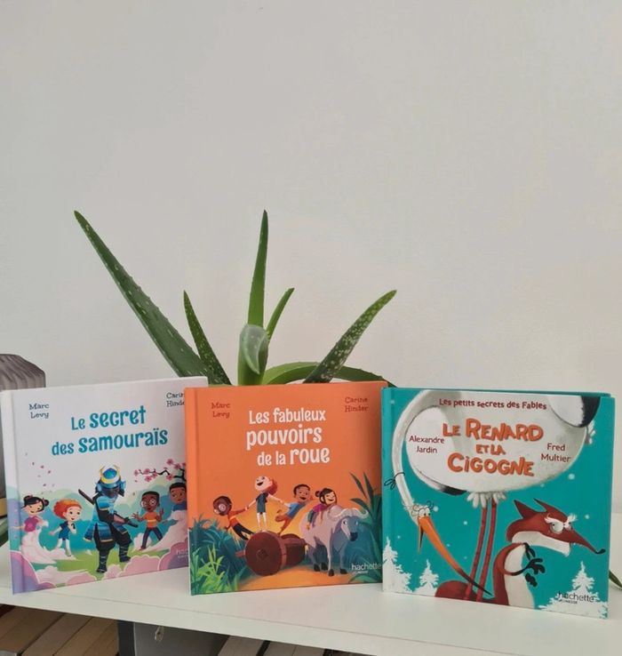 lot de 3 livres pour enfant : - Le renard et la cigogne - Le secret des samouraïs - Les fabuleux pouvoirs de la roue Très bon état #virginie2220livres