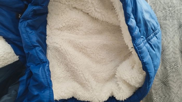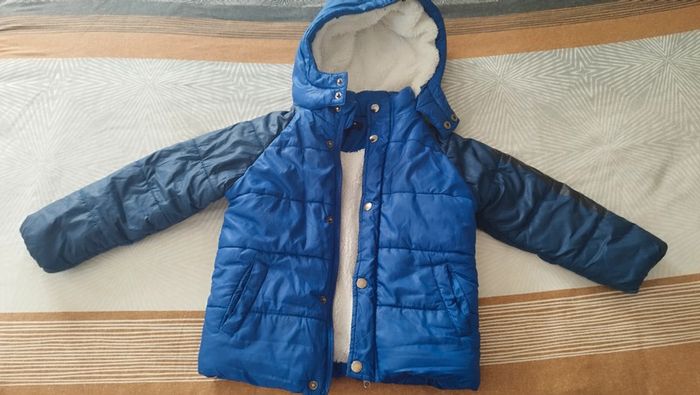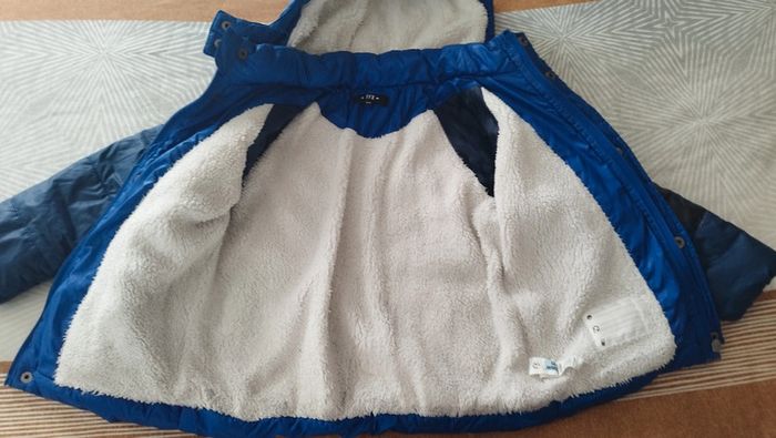 Manteau bien chaud fourré avec revêtement extérieur déperlant, style doudoune, mixte. En excellent état si ce n'est la fausse fourrure sur le bas qui est légèrement abîmée par endroit. D'autres articles en 4 ans par ici : #fille4anselpi2201