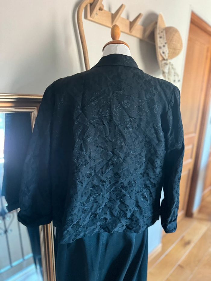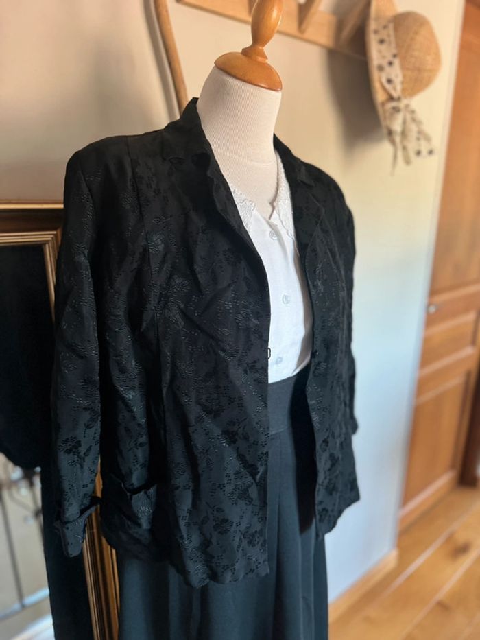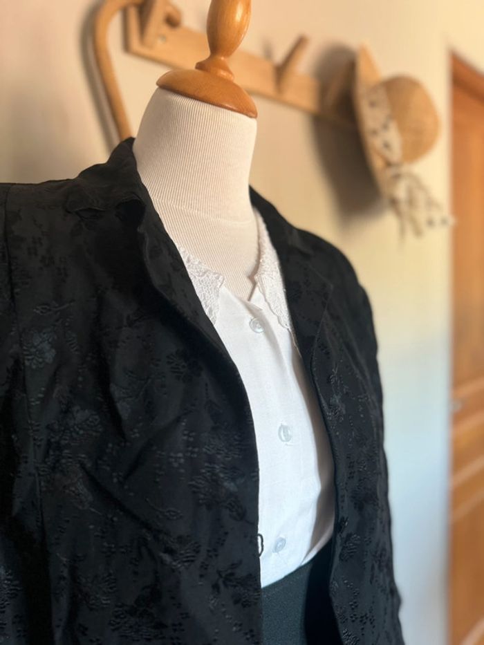 Veste Légère Courte Noire  Elegante avec motifs Fleurs Vintage Faite Main Années 70/80 - photo numéro 3