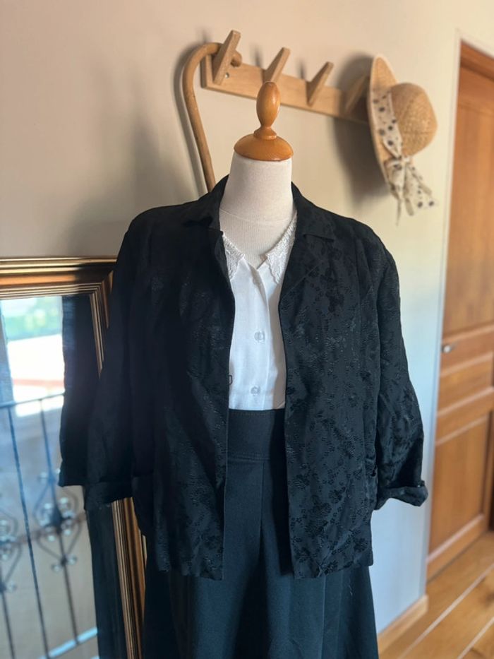 Veste Légère Courte Noire  Elegante avec motifs Fleurs Vintage Faite Main Années 70/80 - photo numéro 1