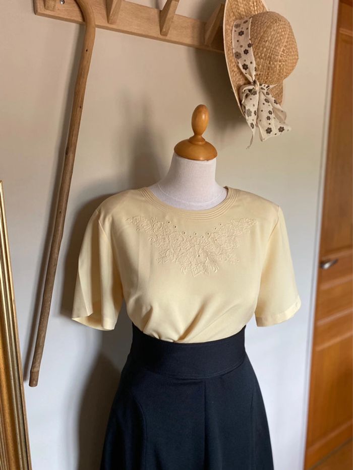 Bonjour,voici mon dressing! 👐🏻 Blouse Jaune Pâle avec Broderies Vintage, années 70-80 Marque Les Impeccables La Redoute 100% Polyester Taille 44mais plutôt un 42 actuel En excellent état Conditions : 💫 Envois de préférence avec Mondial Relay ✖️ Toute demande avec LaPoste et Relais Colis sera refusée ✖️ Pas d’échange 💫 Chouchou fait main, recyclé, aux coloris aléatoires offert dès 30€ d'achat Bon shopping ! 🛍