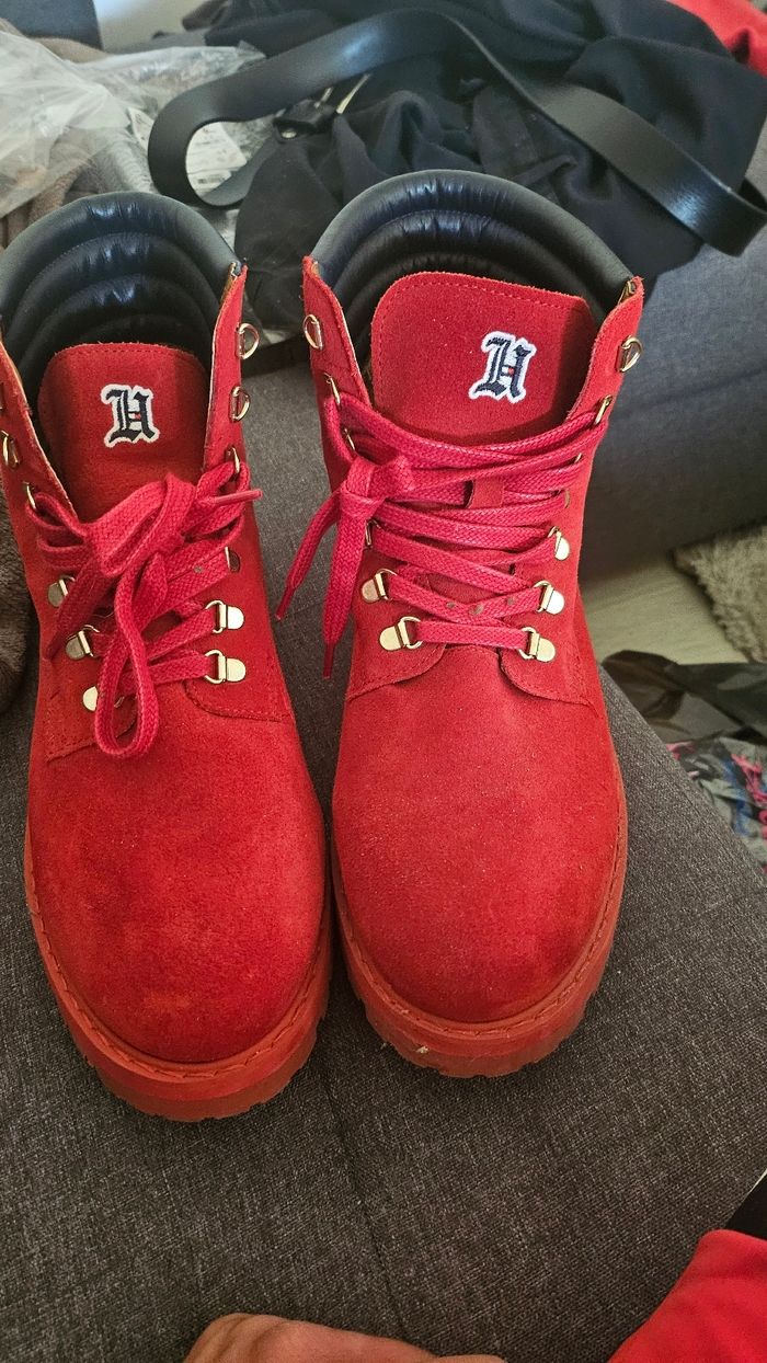 Boots homme rouge Tommy Hilfiger Très agreable à porter Tres peu porté Couleur rouge Taille : 45