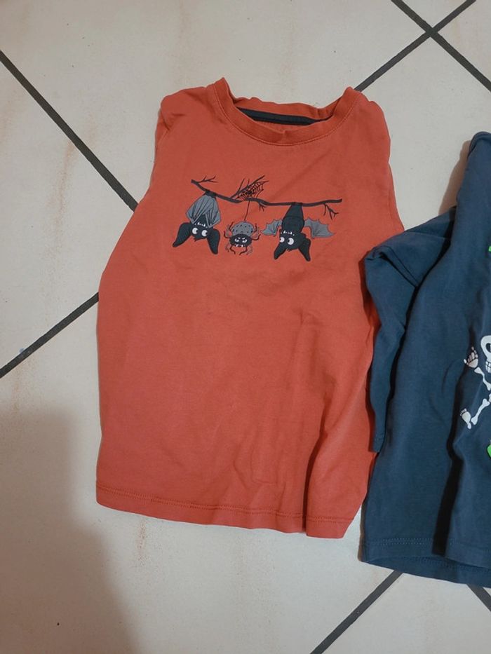 Lot comprenant 2 tee shirts manches longues thème Halloween et 1 short Taille 4/5 ans