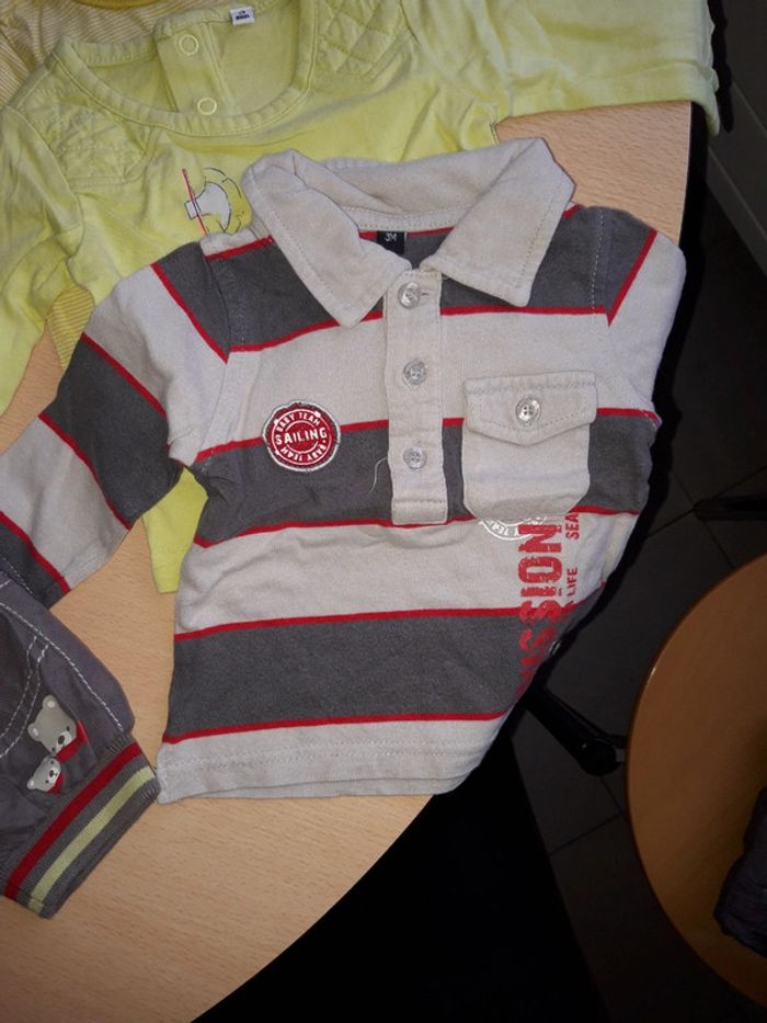 3 mois 1 ensemble district corp 2 bas influx 1 bas kiabi 1 jean gemo 1 haut Vertbaudet 1 haut in extenso 1 polo sans marque 1 haut sans marque