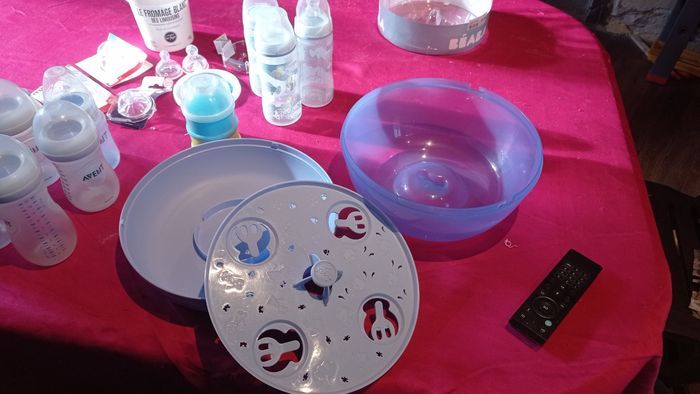 Vend stérilisateur pour biberons Tigex en très bon état avec lot de biberons Avent (en plusieurs gabarits) et Nuk + quelques tétines n'ayant jamais servi