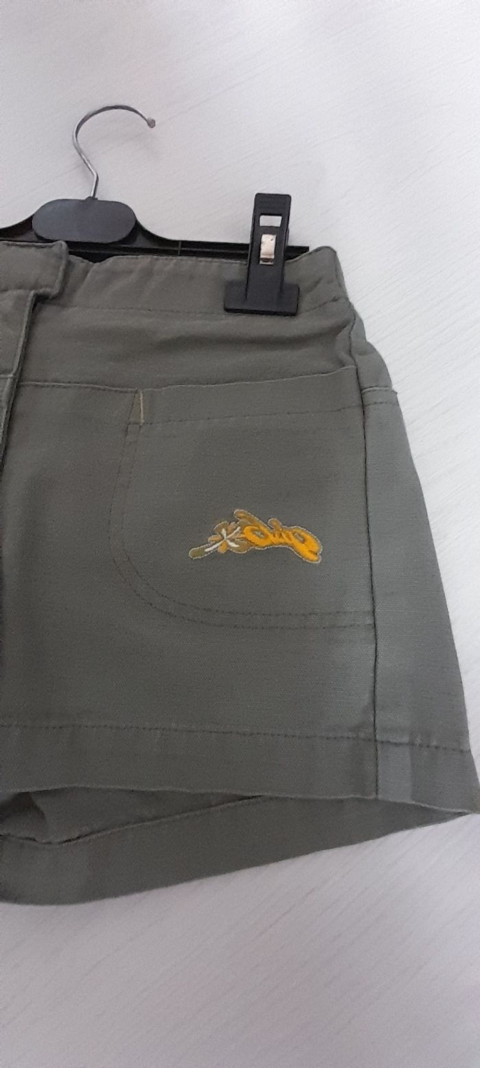 Short T 10 ans Marque DDP Couleur kaki Attaches fermeture éclair et scratch 2 poches devant dont une avec broderie 2 poches arrière avec scratch Taille arrière élastique Quasi neuf porté 1 fois