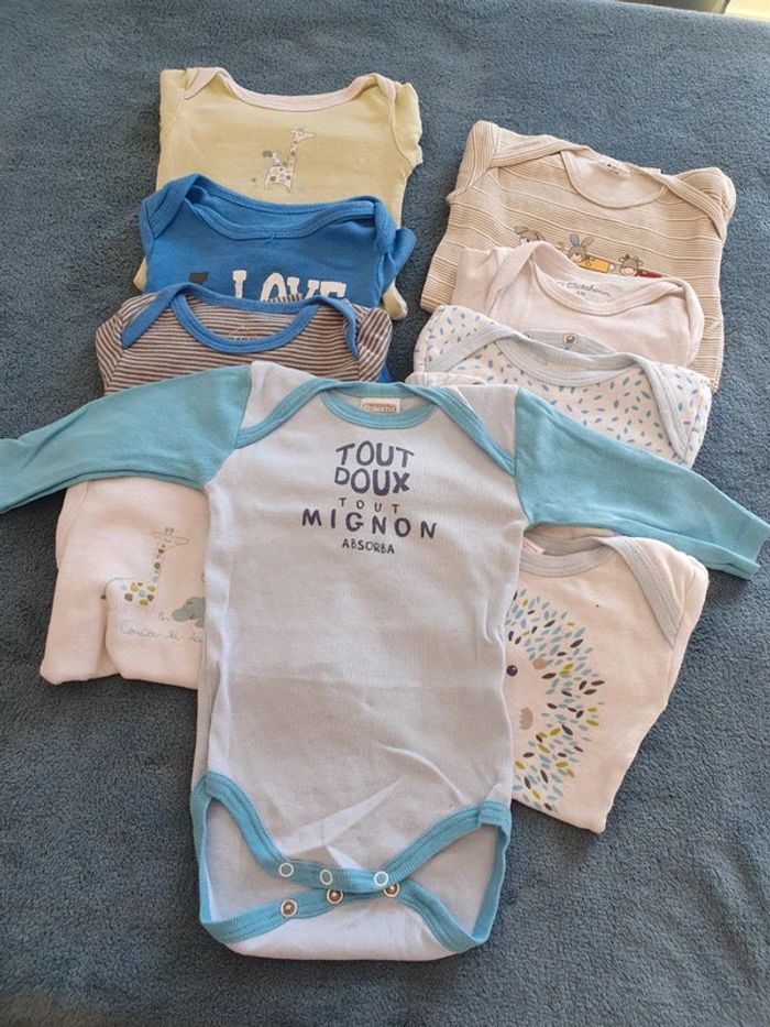 Occasion très bon état : lot de 10 bodys manches longues MIXTE Pressions entrejambe Multi marques : absorba, gémo, tex ...