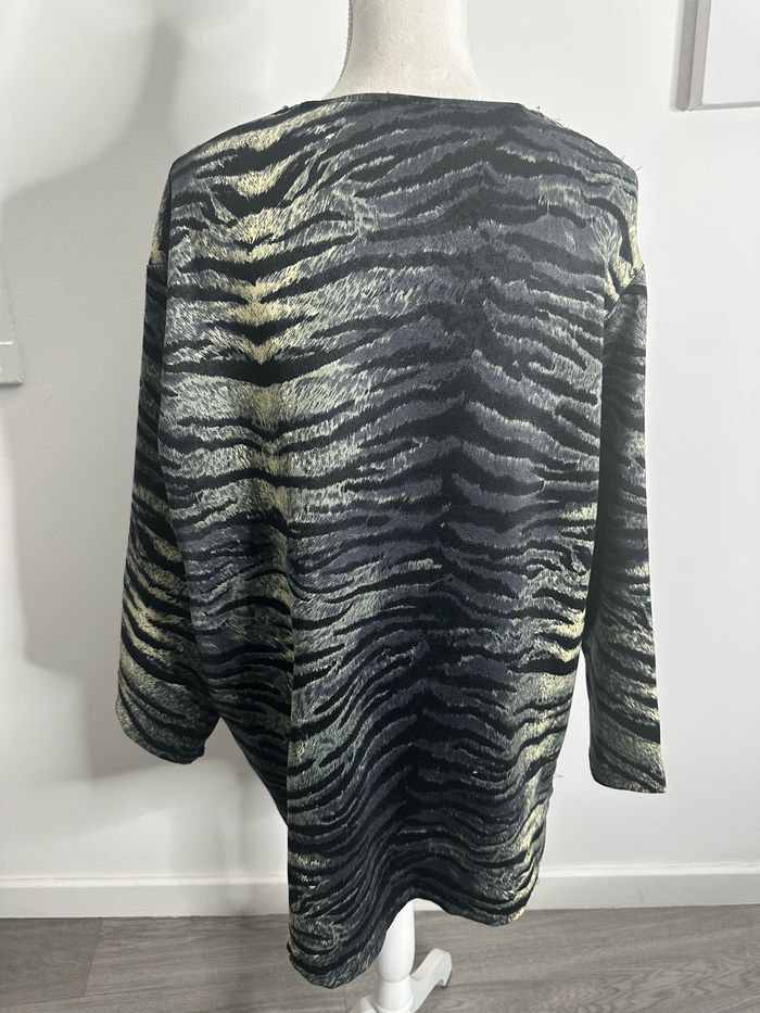Pull fin velours zèbre gris et jaune Vintage T46/48 3XL/4XL
