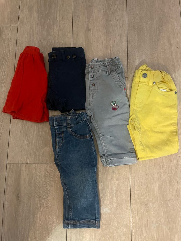3 pantalons 2 short 1 robe 2 pyjama 1 salopette