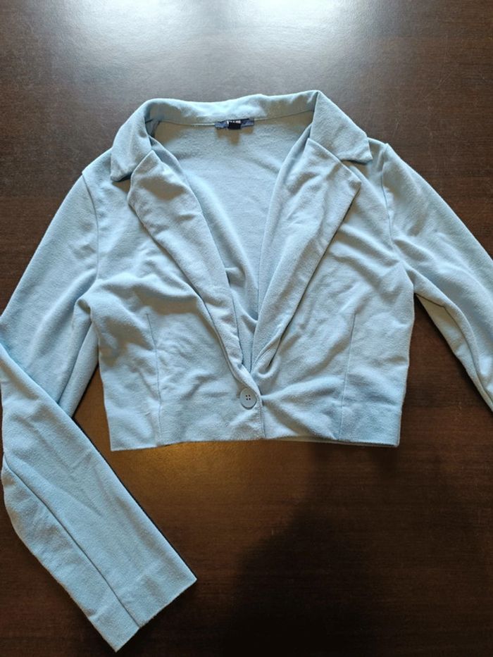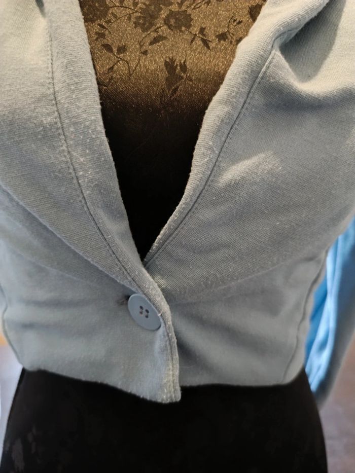 Veste KIABI Bleue Fermée par 1 bouton 70% Viscose, 27% Polyester & 3% Elasthanne TAILLE XXS TRES BON ETAT Allez voir mes autres ventes!