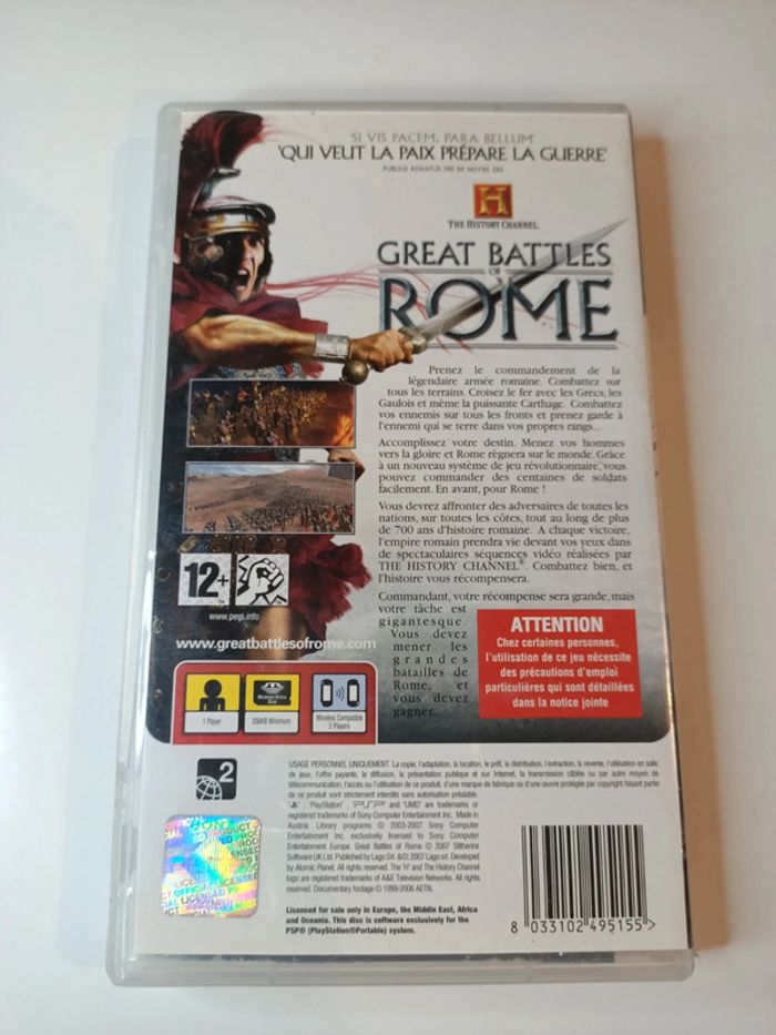 Jeu Playstation PSP great battles of rome complet (boîtier FR)