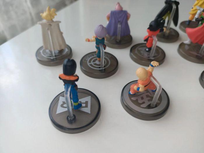 État plutôt bon, le Gohan est collé car trop de jeu entre ses pièces durant l'assemblage, la tige plastique de support est collée a sa base pour quelques figurines.
