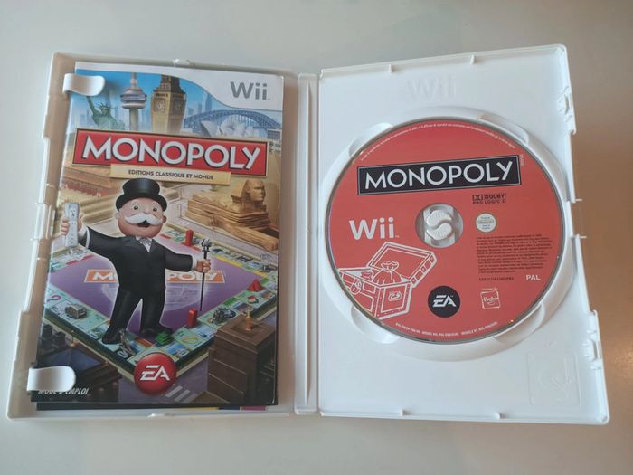 Jeu vidéo Nintendo Wii monopoly complet plutôt en bon état, le disque a des petites rayures sans incidence sur la lecture