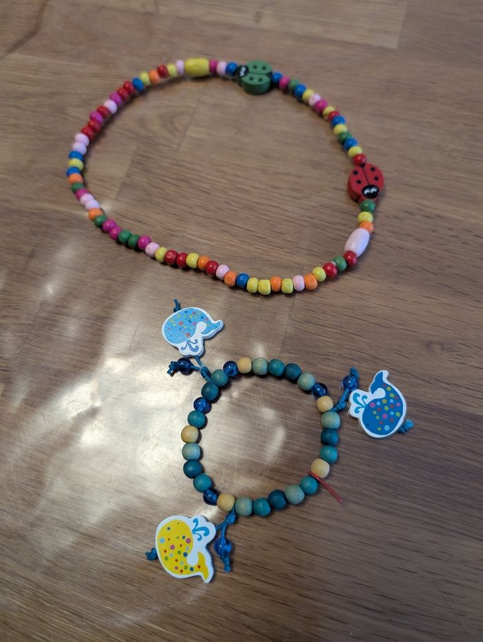Collier et bracelet pour fille en bois Très bon état