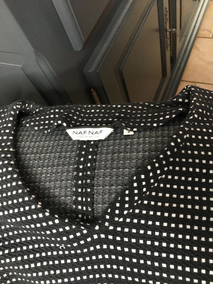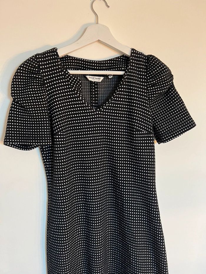 Petite robe Naf Naf Mi-saison Petits carreaux blancs et noirs Manches courtes Taille S Petite encolure en V Facile d’entretien Très bon état