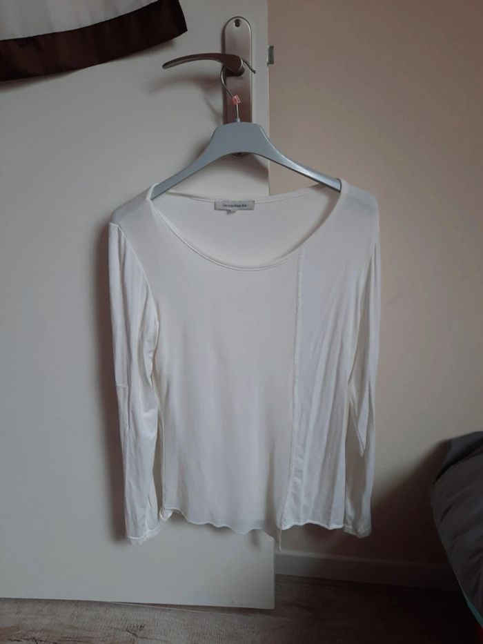 Haut manches longues taille Jacqueline riu. Peu mis très bon état . Taille 2 à priori correspond à un taille 36. Je n ai pas d étiquette pour la matière. #noemiemarie2femme