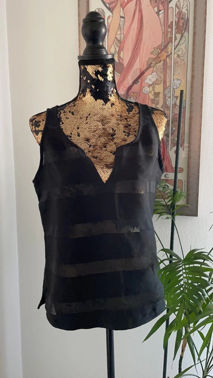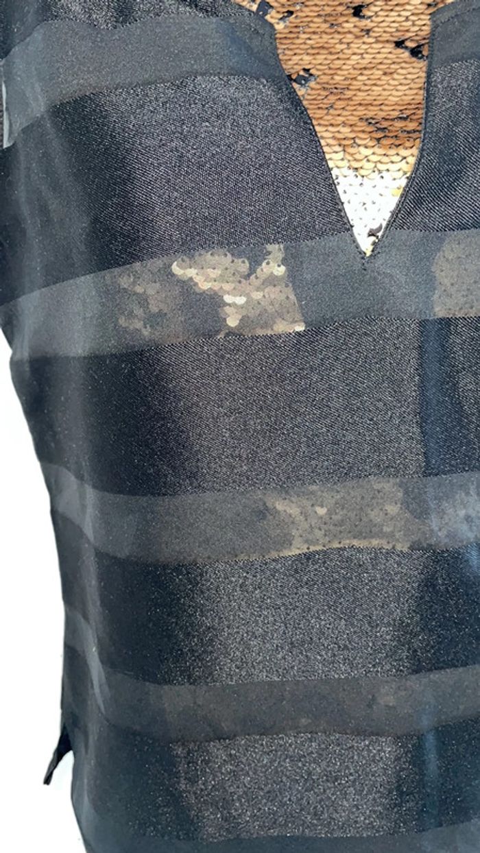 très bon état raye noir et transparent il n’y a pas d’étiquette de taille mais c’est environ du 38