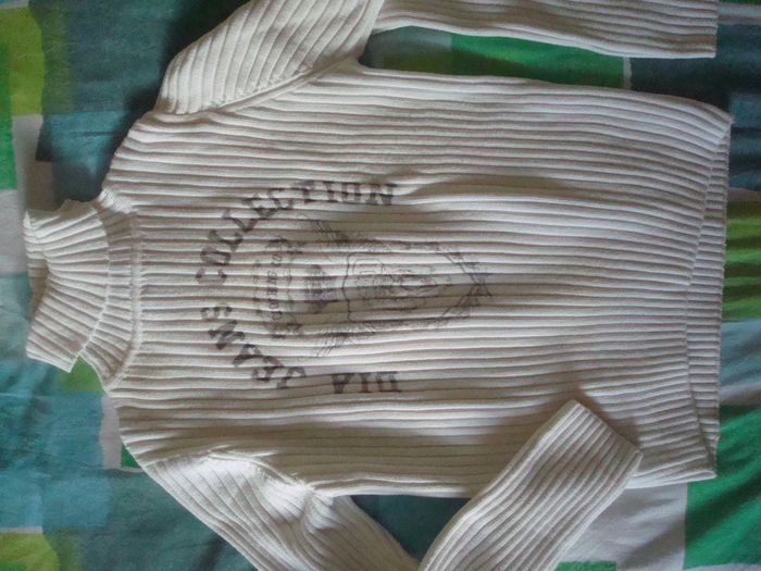 Pull blanc avec motif Col roulé - Taille M 50% acrylique 50% coton