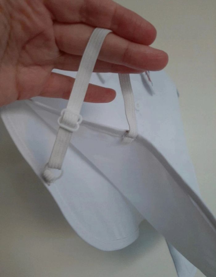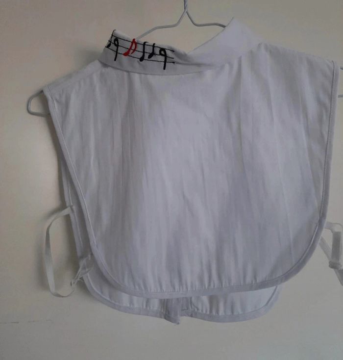 Joli sous-col blanc avec notes de musique sur le col. Elastiques sur les côtés réglables. Boutons à l'avant. Super joli ! Porté juste pour faire une photo. Je le vends au prix de 12 euros. #Accessoiresmarine