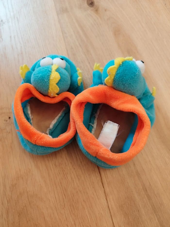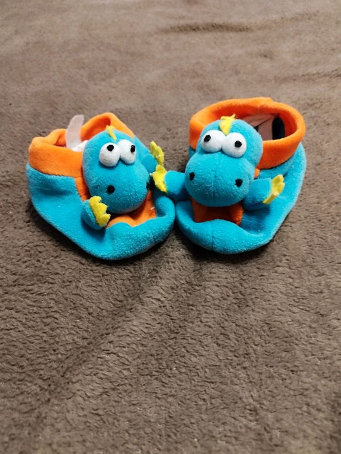 Chaussons pointure 19, en forme dinosaure, très bon état.