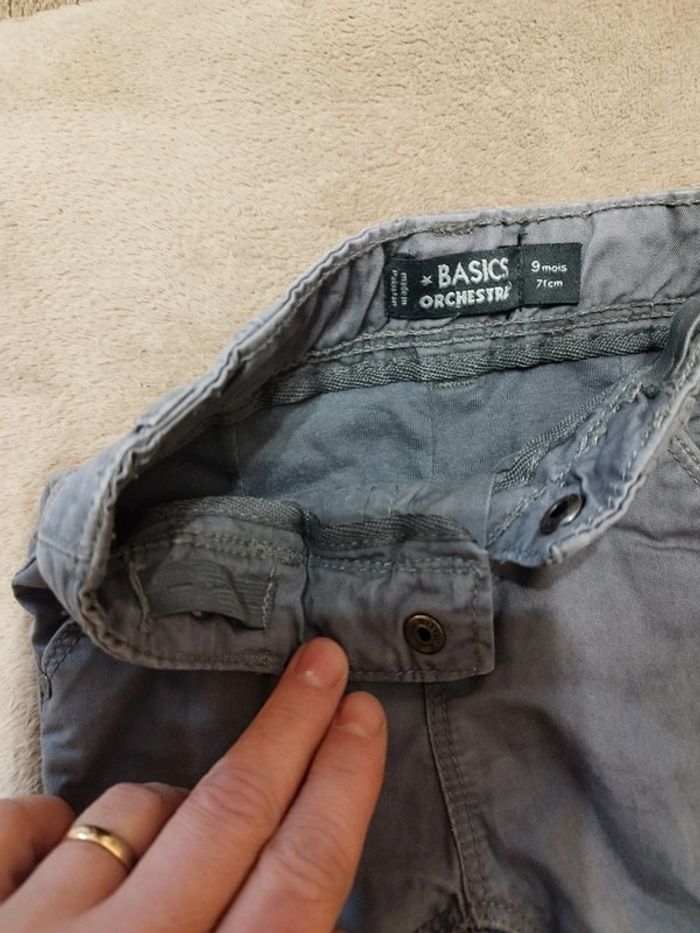 Lot de 3 pantalons taille 9 mois 2 noirs en velours et 1 gris en toile Très bon état Marque Orchestra et Kitchoun
