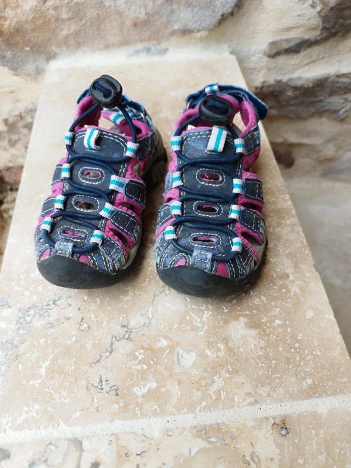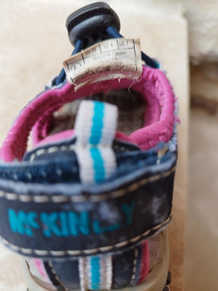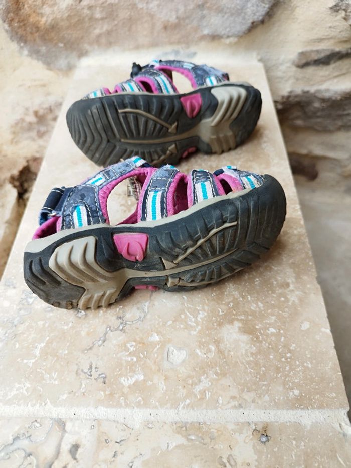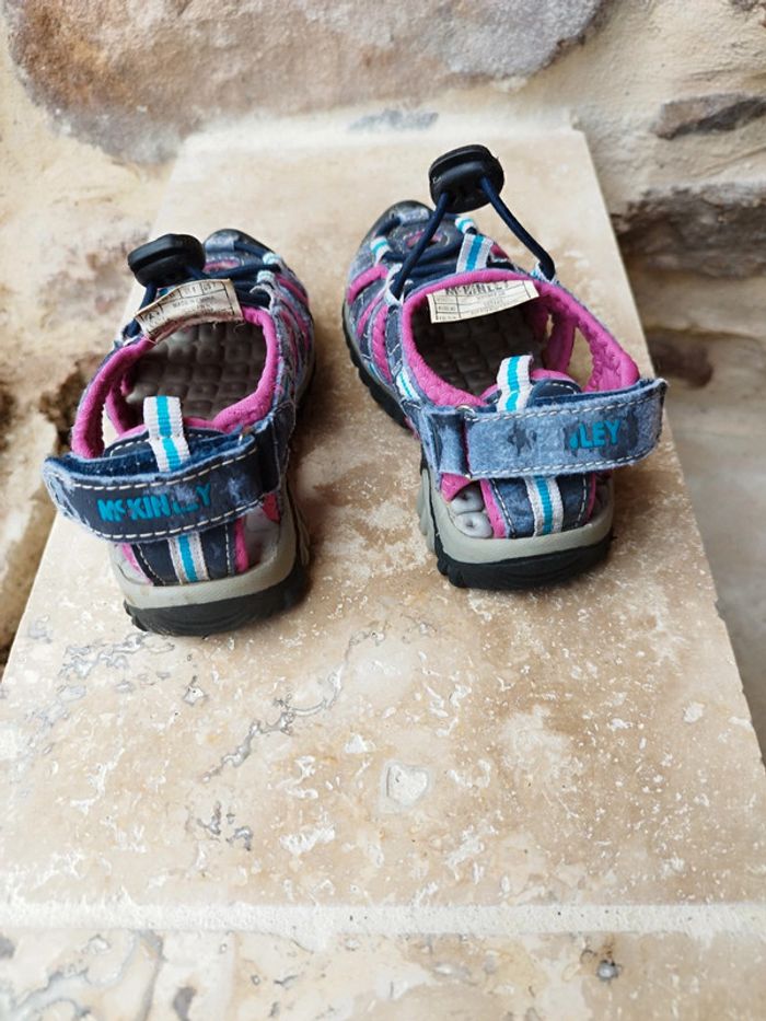 Sandales de randonnée rose McKinley, pointure 23. Fermeture à scratch à l'arrière du pied. très bon état, quelques éraflures, notamment au niveau de l'écriture du scratch.