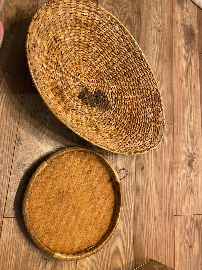 Lot 2 panières en osier pour panier à fruits ou décoration florale, etc. La grande panière à une tâche au centre (cf photo)