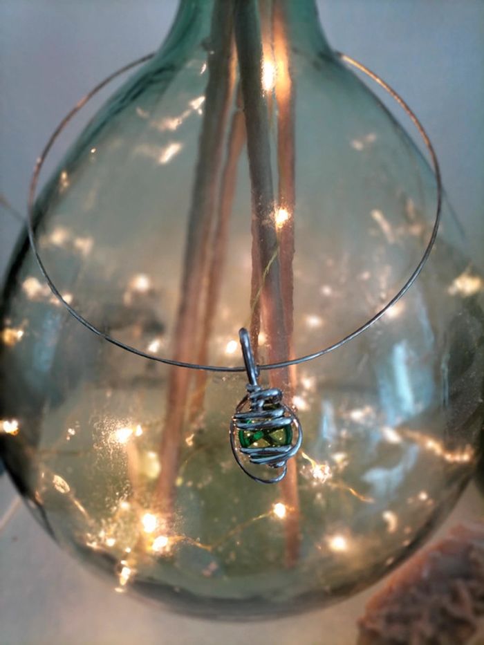 Fait par un petit créateur dans le sud Argent un peu oxydé Perle de verre verte
