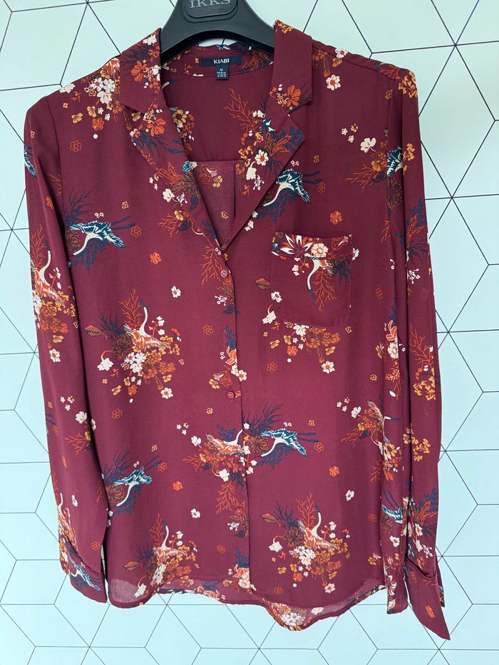 Chemise fluide bordeaux fleurie Kiabi M