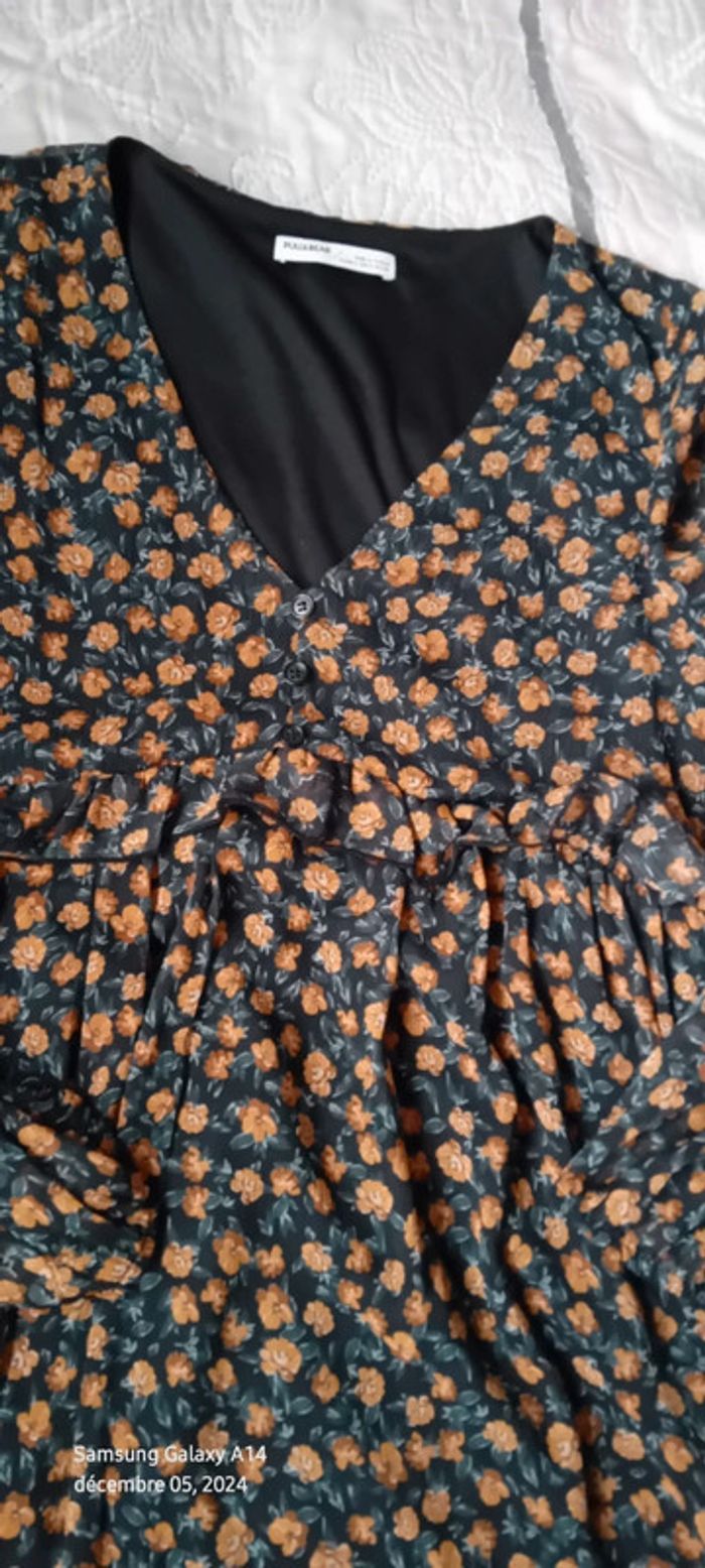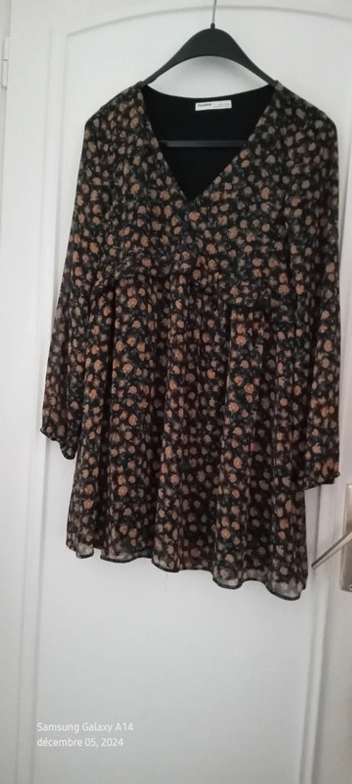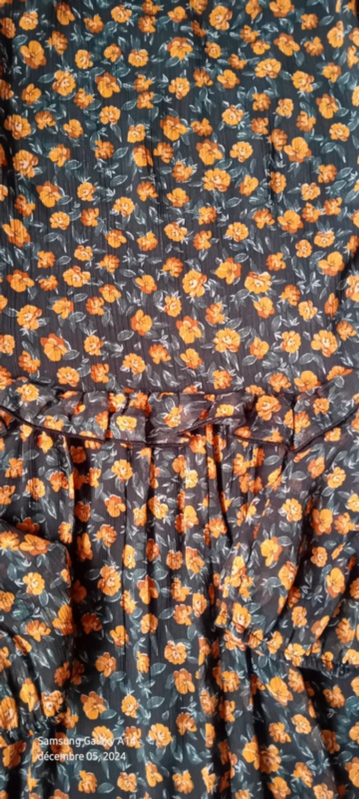 Robe en voile esprit bohème boheme motif floral orange noir femme S pull & bear