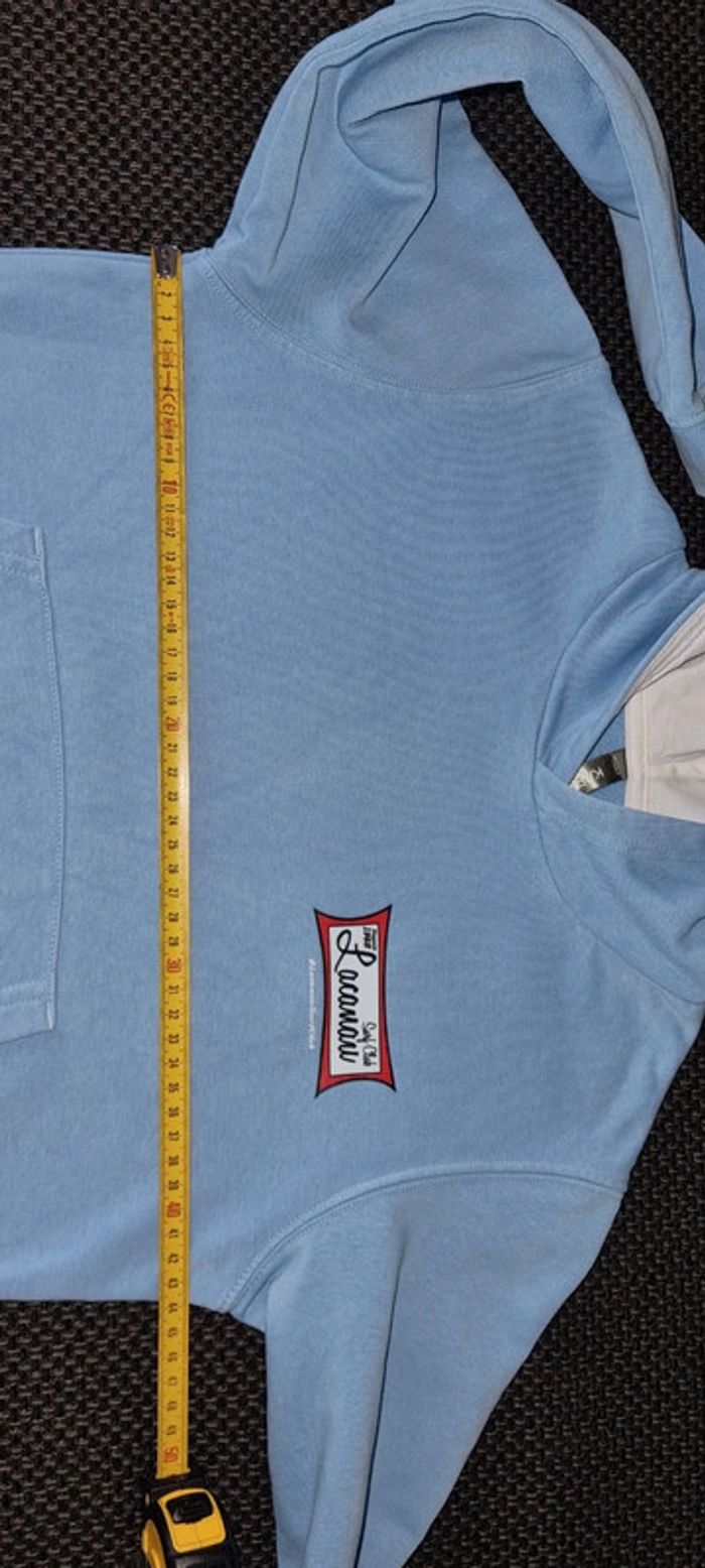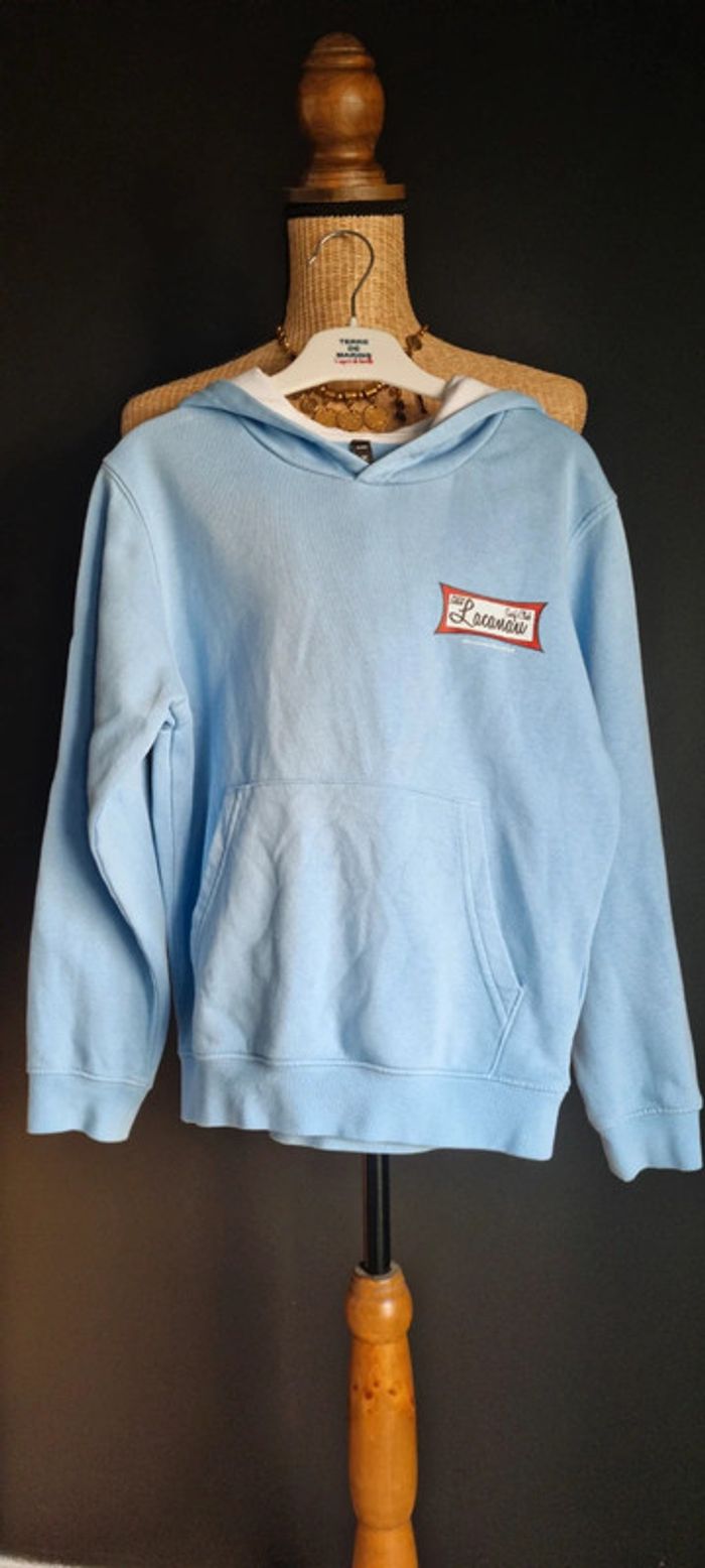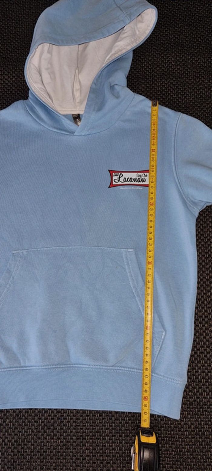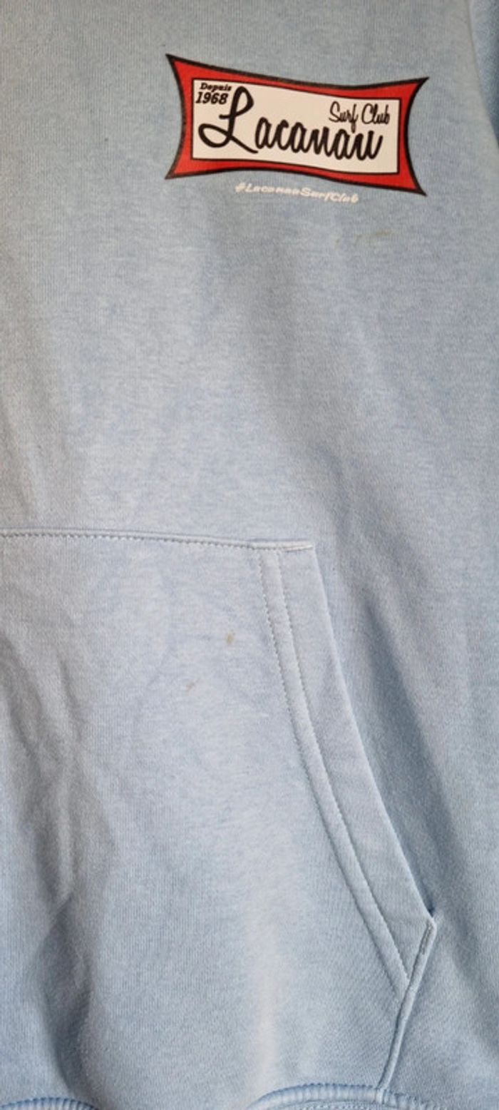 Pull bleu clair à capuche 🏄‍♀️ Du Lacanau Surf Club 🏄‍♂️ 8 / 10 ans Des très légères tâches peu visibles (voir les 2 dernières photos) Pas de trou, non déchiré