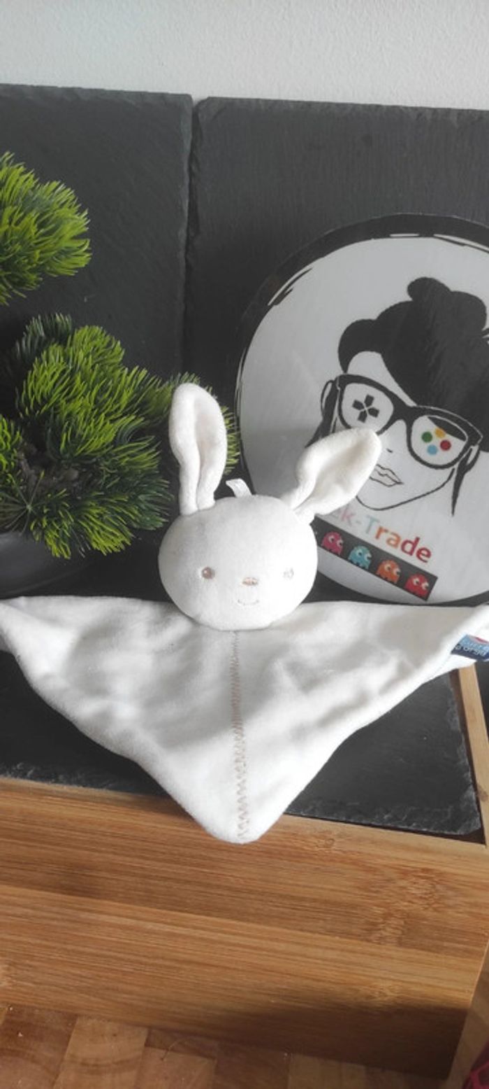 doudou lapin blanc sucre d'orge doré zig zag carré - photo numéro 1